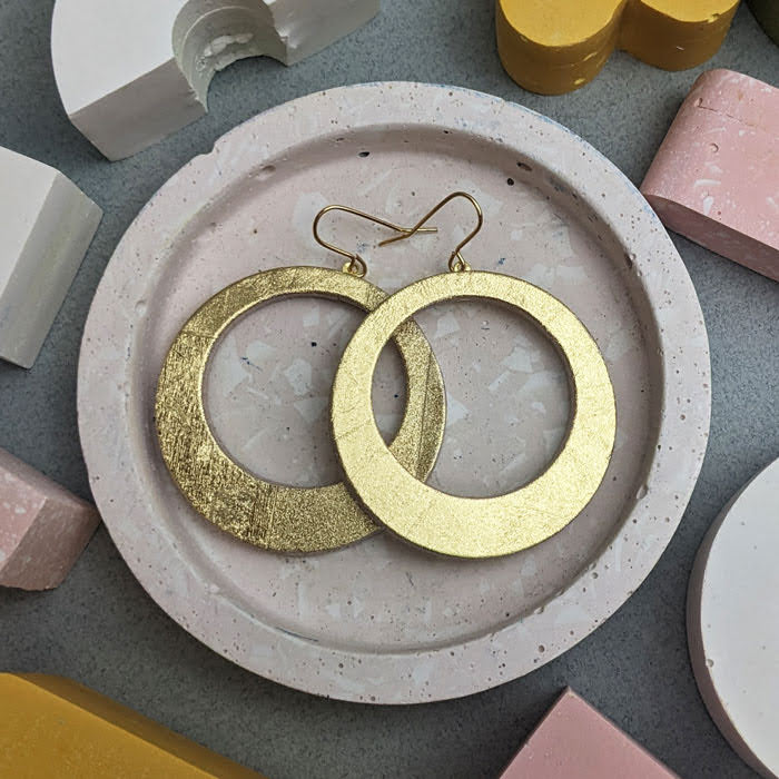 Large hoop earrings are 5cm in diameter and all findings are either gold or silver plated.