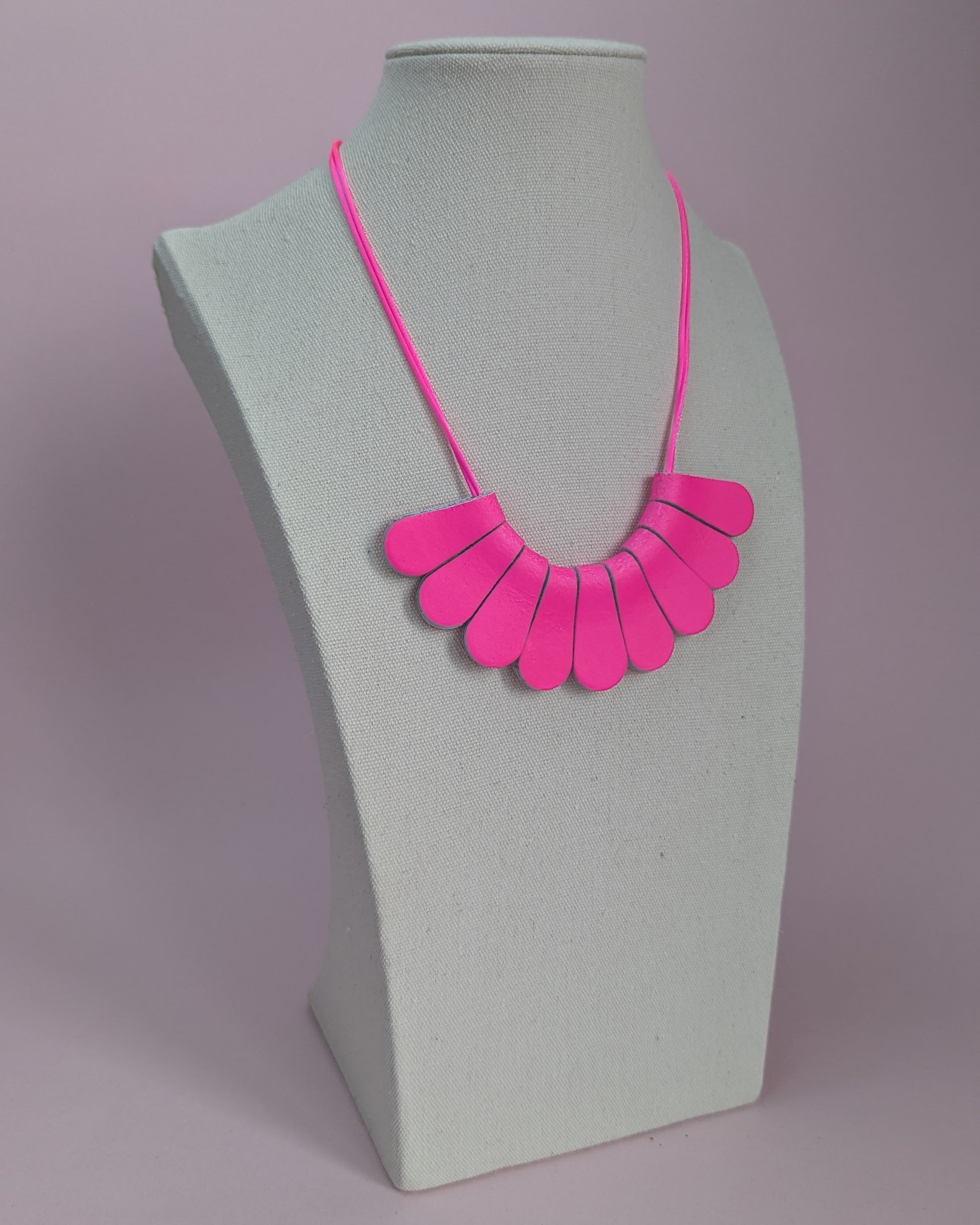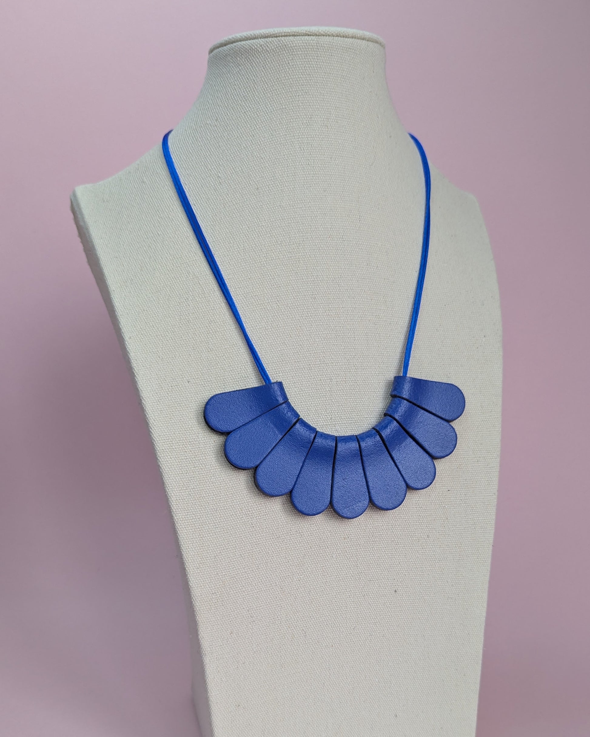 Individual leather petal necklace, with satin cord and silver or gold plated lobster clasp and extension chain.